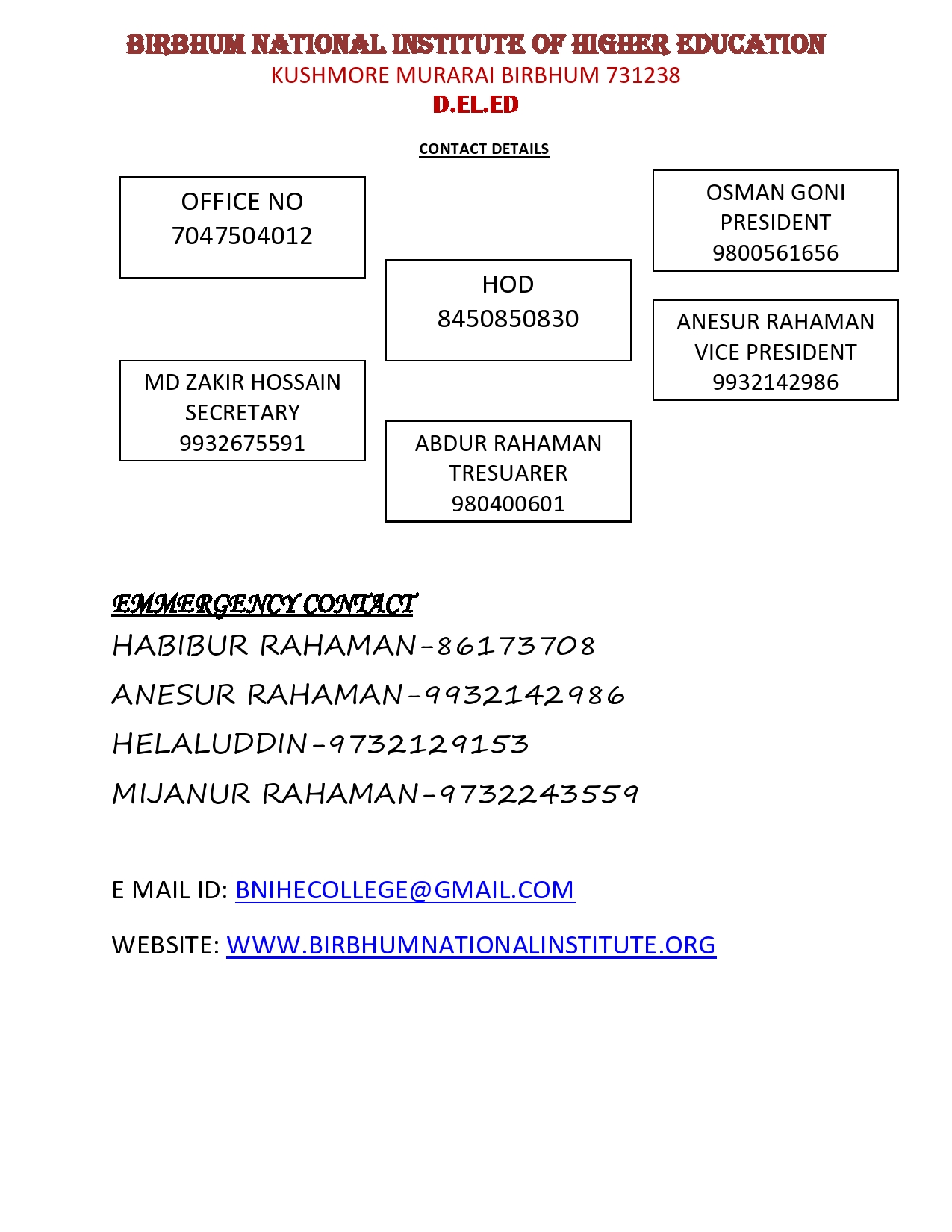 Tel: 983267559/9932733717 Email:bnihecollege@gmail.com